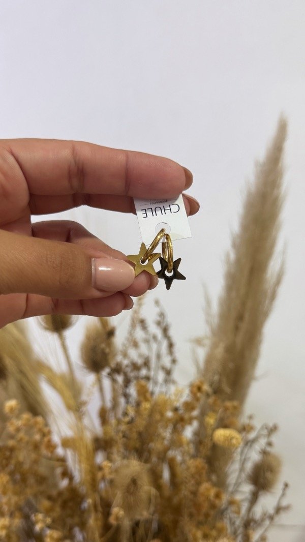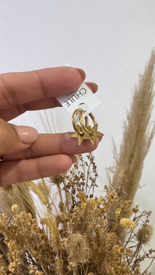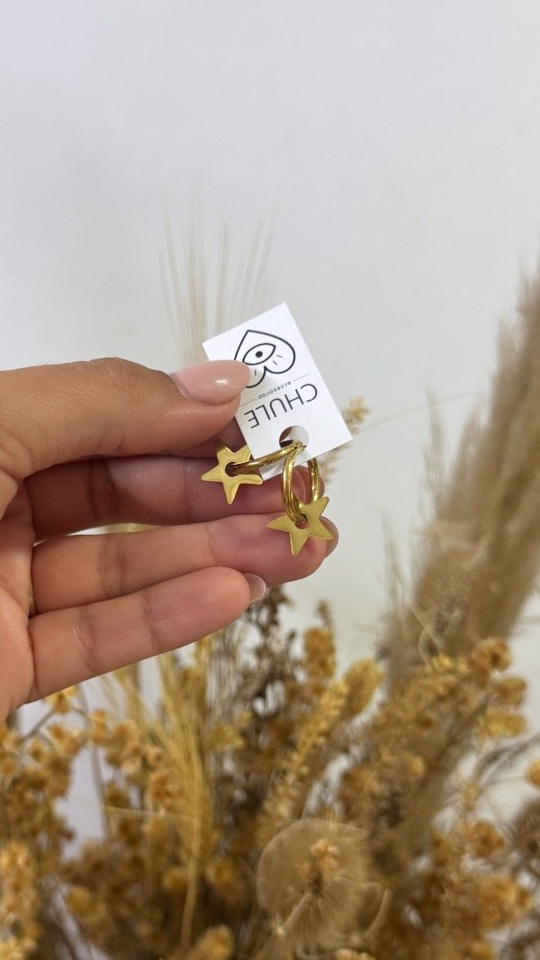 Argollitas de acero dorado con dijes desmontables ~ cierre clip