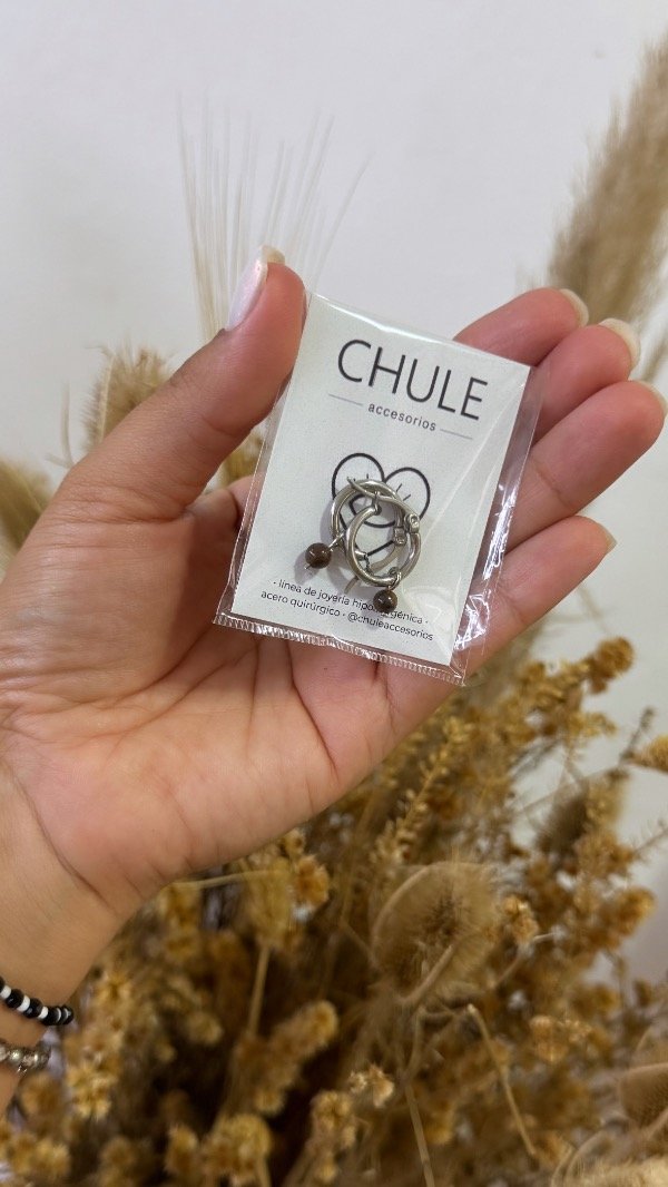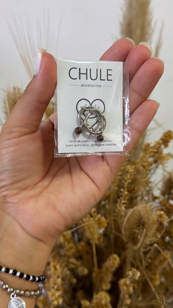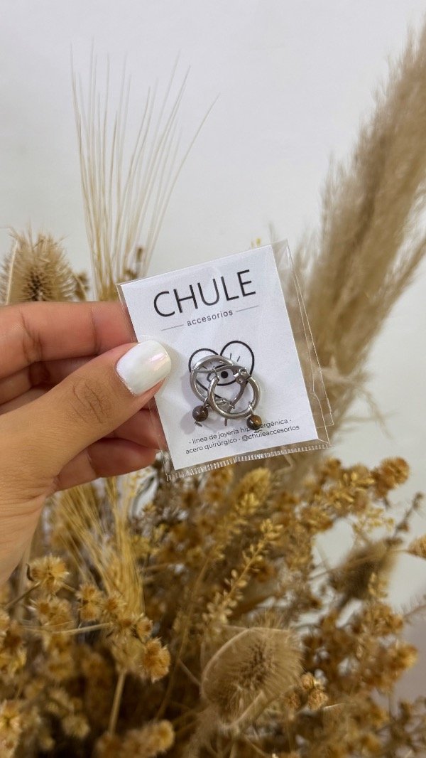 Argollitas de acero quirúrgico & piedra natural en dije desmontable