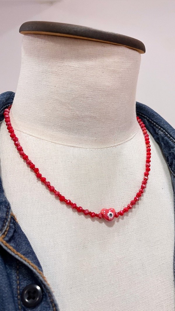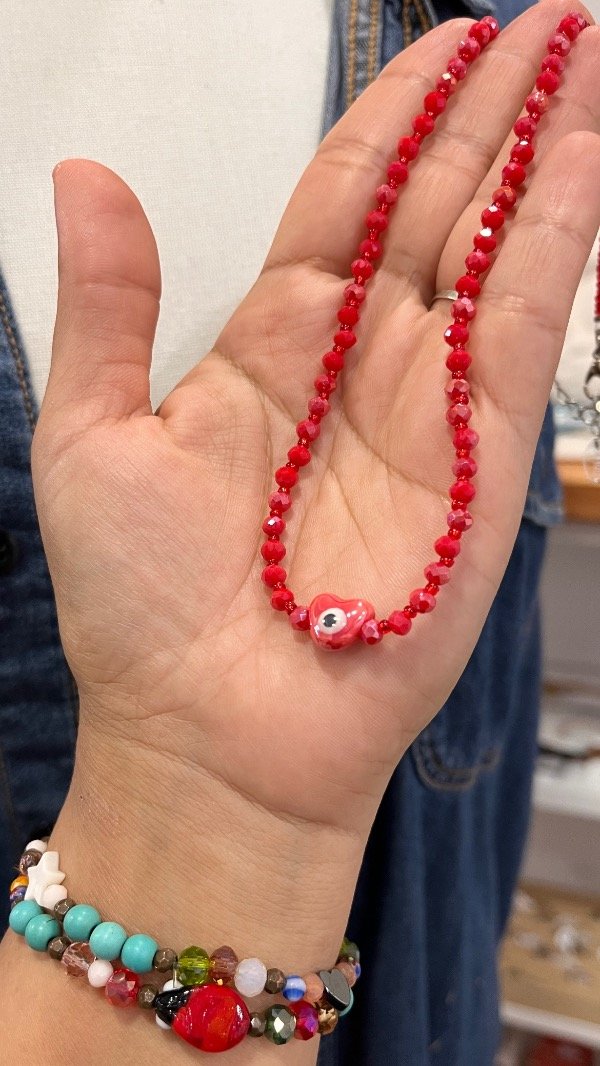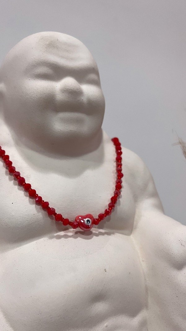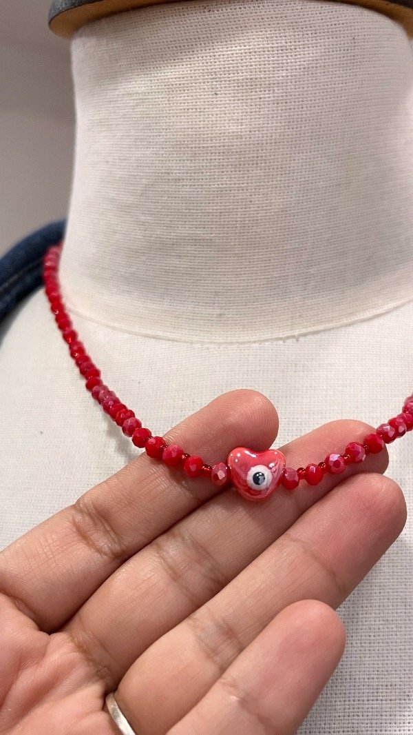 ~ mix de cristales, mostacillas y ojo turco en cerámica para protegernos y decretar fuerza , coraje y pasión, junto al color rojo ❤️💫