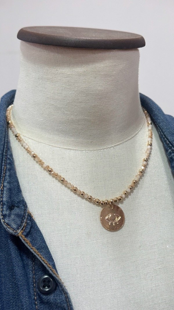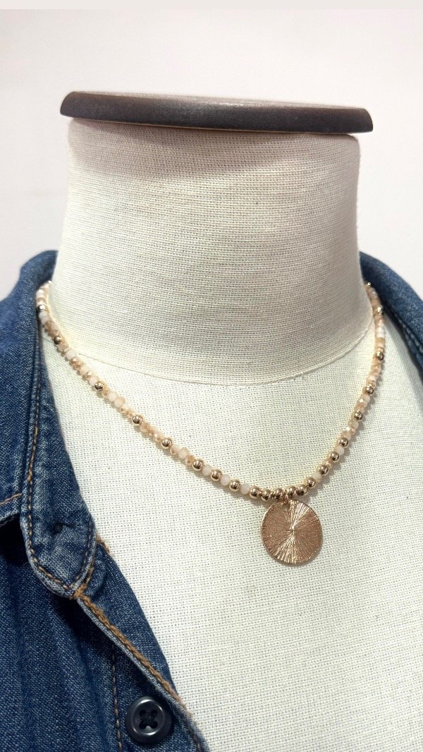 Un mix de cuestas de metal color oro y cristales fascetados nacarados ~ cierre regulable ~ aprox 40/45cm