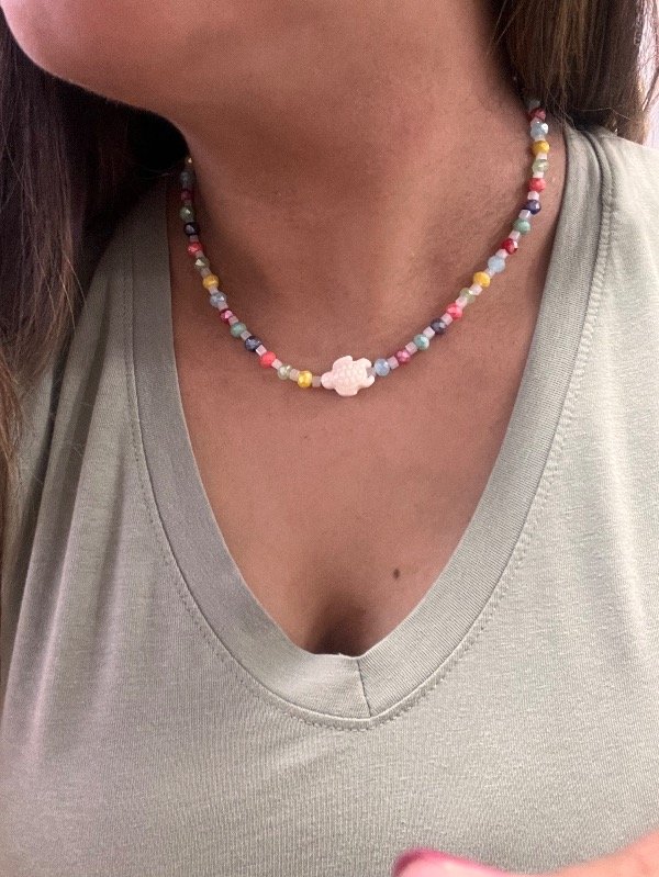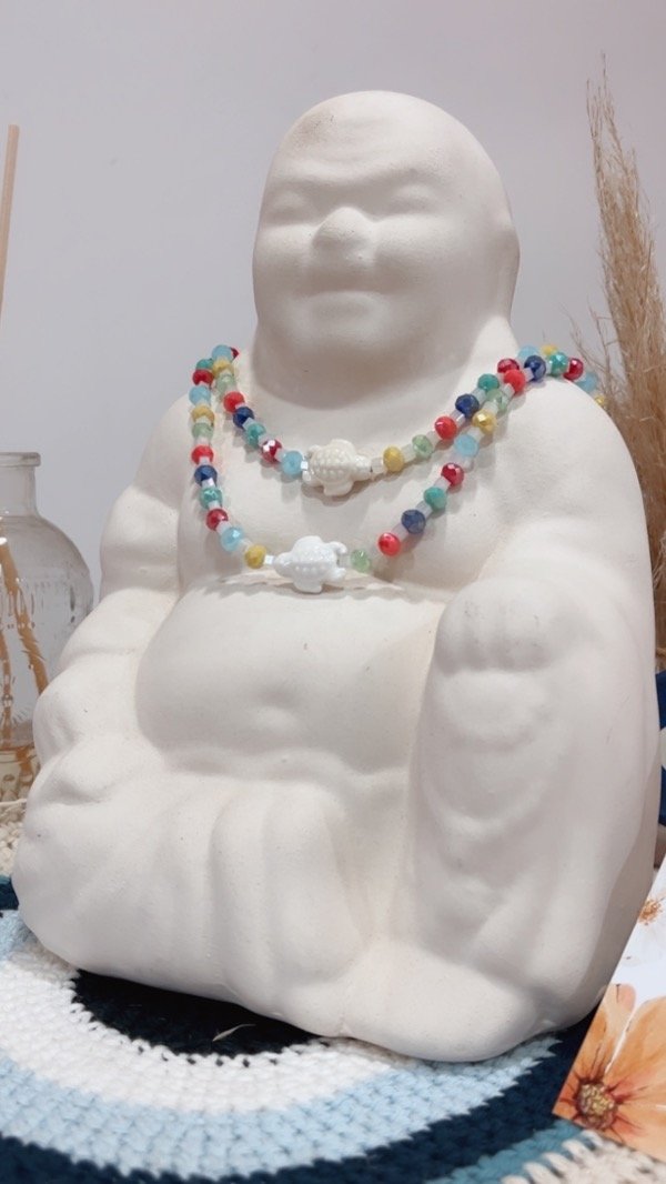 Mix de cristales, colores y vibras veraniegas ✨ tortuga blanca en cerámica ~ línea hipoalergénica ~ cierre y cadena de alargue en acero quirúrgico ~ medida aproximada 40/45cm