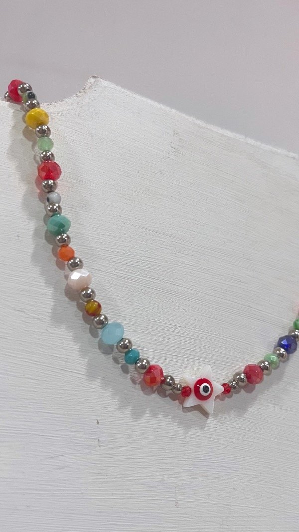 ~ Materiales: cuentas de cristal de roca, nácar, mille fiore, ojitos turco mini y cuentas de metal fundido. Cierre con largo regulable! Versatilidad y comodidad ante todo ~ medida aproximada 40/45cm.