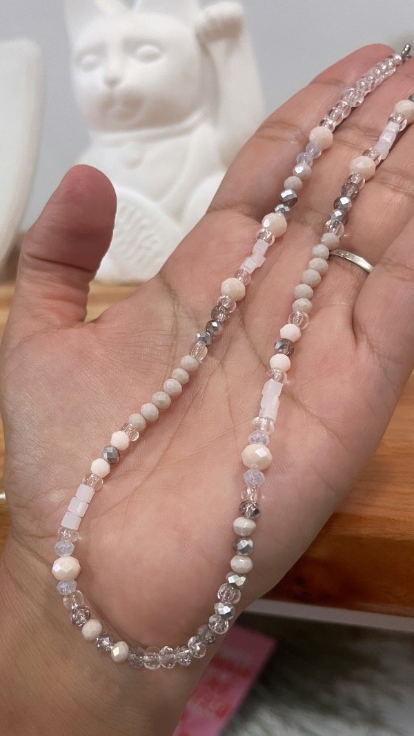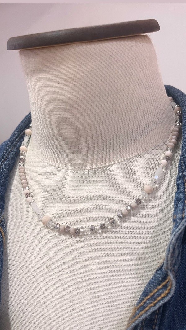 • mix de cristales fascetados en tonos beige, crudo y tonarsol