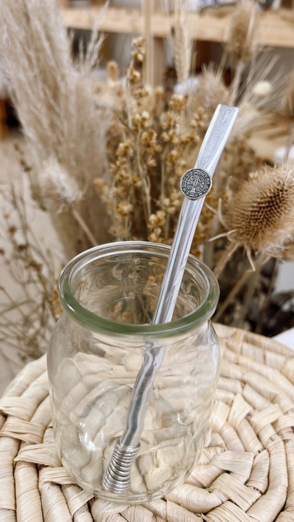 Bombilla de aluminio con dijes de fundición en color niquel. El filtro se desenrosca, se puede usar para mate o bebidas como ecobombilla! ~ elaboración artesanal ~ miden 14/15cm. Aprox.