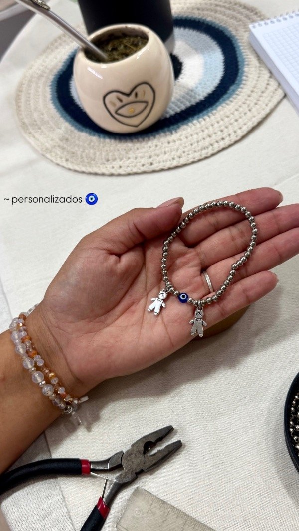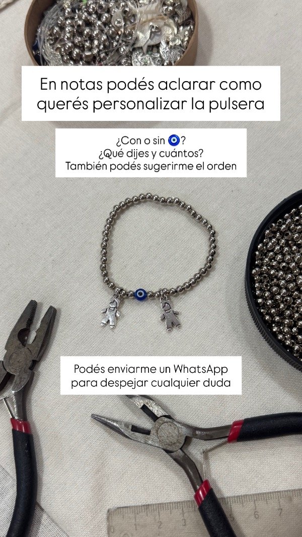 luego al realizar la compra, en NOTAS podés dejarme detallado si querés que tenga ojito turco o no + orden de niñas/os en la pulsera.